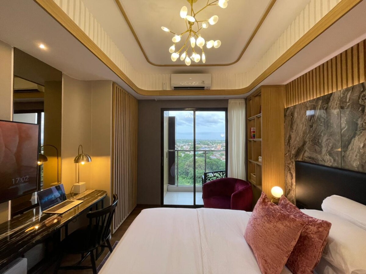 Trải nghiệm khung cảnh Gunung Merapi ngoạn mục từ căn hộ 1 phòng ngủ trên tầng cao nhất này. Hoàn hảo cho các cặp đôi, bạn bè và người du mục kỹ thuật số, nó ngủ 2 người và có nội thất riêng biệt, nhà bếp đầy đủ tiện nghi, Wi-Fi nhanh, 2 điều hòa nhiệt độ và bàn làm việc chuyên dụng. Tận hưởng hồ bơi & phòng tập thể dục của tòa nhà. Nằm cách trung tâm thành phố 15 phút và dễ dàng đến từ đường vành đai của Yogya Đặt ngay để có thời gian lưu trú thanh bình tại Yogyakarta!