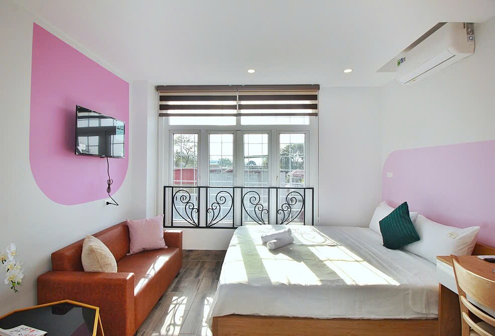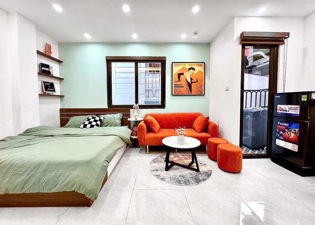 Experience a peaceful stay at Moonlight Cinema Studio — a warm minimalist retreat designed for relaxation and cozy movie nights. This thoughtfully styled Japandi-inspired space features soft ambient lighting, a comfortable wooden bed. Large windows bring in gentle natural light by day, while the calm neutral tones create a soothing atmosphere at night. Conveniently located near West Lake, cafés, and local eateries, it’s a perfect hideaway for couples and solo travelers seeking comfort and charm.