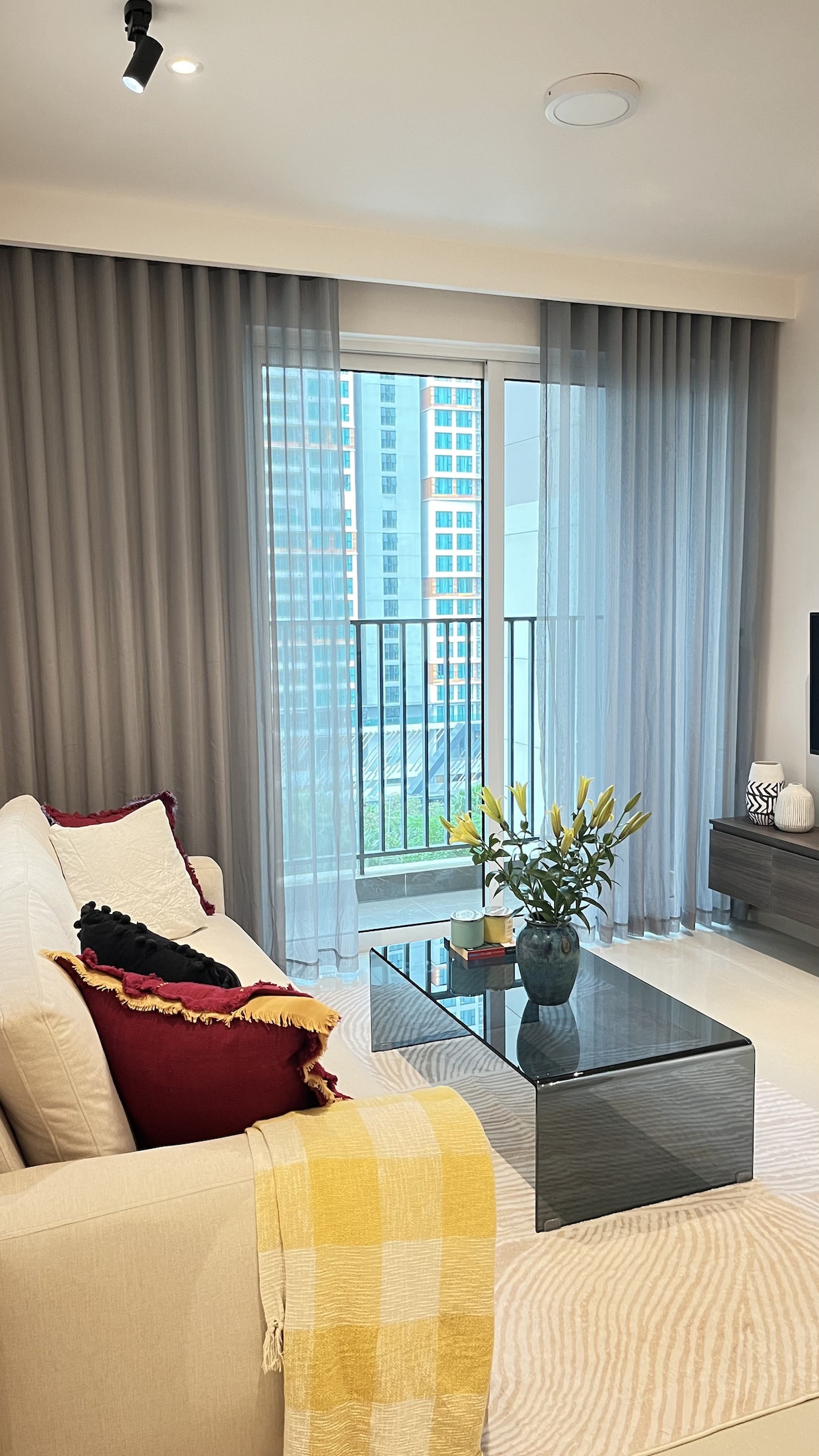 🛫AIRPORT PICKUP SERVICE AVAILABLE🛬 🕯️Step into a world of charm & elegance as you enter our beautifully designed Apt- 2br, 2bath apt located on the 30th floor in District 2, HCM City Spanning 85m2, this spacious apartment offers a unique blend of traditional Hoi An vintage style & modern comforts, providing a serene & stylish retreat for your stay. Start your day with a cup of coffee while watching the sunrise, or unwind in the evening with a glass of wine as you take in the breathtaking scenery