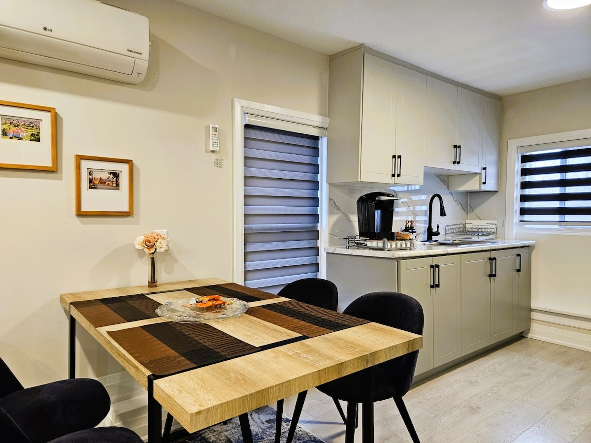 🇨🇦🇨🇦 Licence for Vacation Rental, L-VR-0123 🏡Welcome breakfast items are provided, such as bread & butter, eggs, coffee & cream, tea, and water. The kitchen also has olive oil, soy sauce, apple vinegar, sugar, salt, black pepper. 🏡Fresh towels(face towels, hand towels and bath towels), hair dryer, hand soap, shampoo, hair conditioner, body wash, cotton swap and toilet papers are already in the bathroom. 🏡The location is a 3-minute walk from WEGO bus, bus terminal and GO train station.