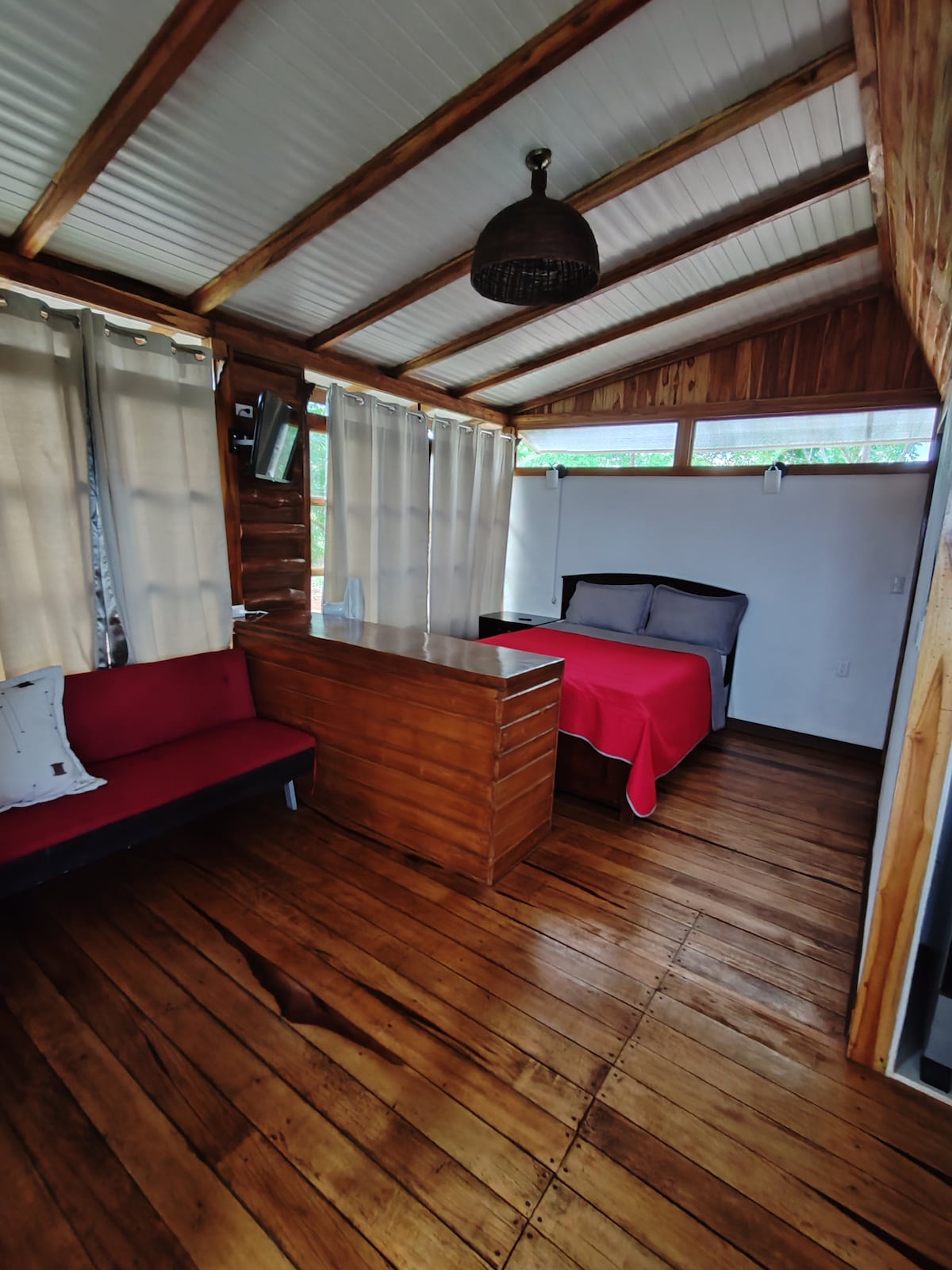 Cabin gỗ, đầy đủ tiện nghi, hoàn toàn mới. Cabin của chúng tôi nằm cách trung tâm thành phố Hojancha 300 m, nơi bạn có thể tìm thấy tất cả các loại dịch vụ. Cách đó 35 km là Playa Carrillo và cách đó chưa đầy 50 km là Punta Islita, nơi trú ẩn động vật hoang dã Camaronal, Playa Corozalito và Samara. Hojancha có thác nước cao nhất ở Trung Mỹ với cao 350 mét, thác Salto del Calvo nằm cách cabin 14 km. Khu vực này lý tưởng để đi bộ đường dài và chạy bộ.