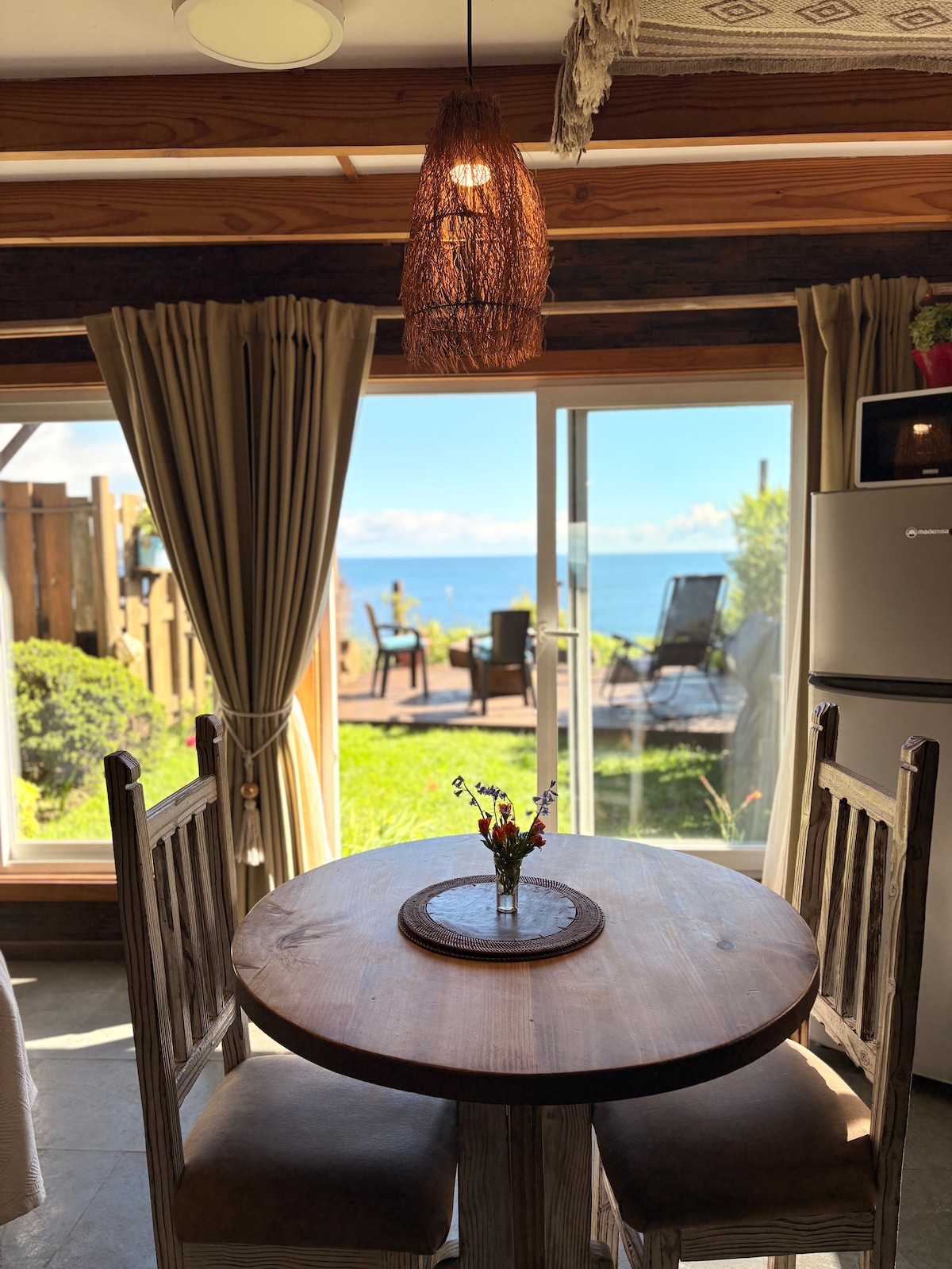 Địa điểm này có tầm nhìn ra biển đặc quyền, nhà nghỉ thôn dã rộng 25 m² với bề mặt ấm áp và thanh lịch. Bạn có thể ngắm nhìn 100% quang cảnh, sự yên tĩnh và ồn ào của thành phố. Nó có một tinaja riêng lớn (chi phí bổ sung) để giúp bạn hoàn thành phần còn lại. Nằm trên bờ biển Valdiviana, cách "Caleta Los Molinos" và các nhà hàng tinh tế 3 phút. Gần Playas xinh đẹp, cảnh quan đẹp và công viên sẽ đưa bạn đi tham quan mọi ngóc ngách của sự quyến rũ Valdivian của chúng tôi.
