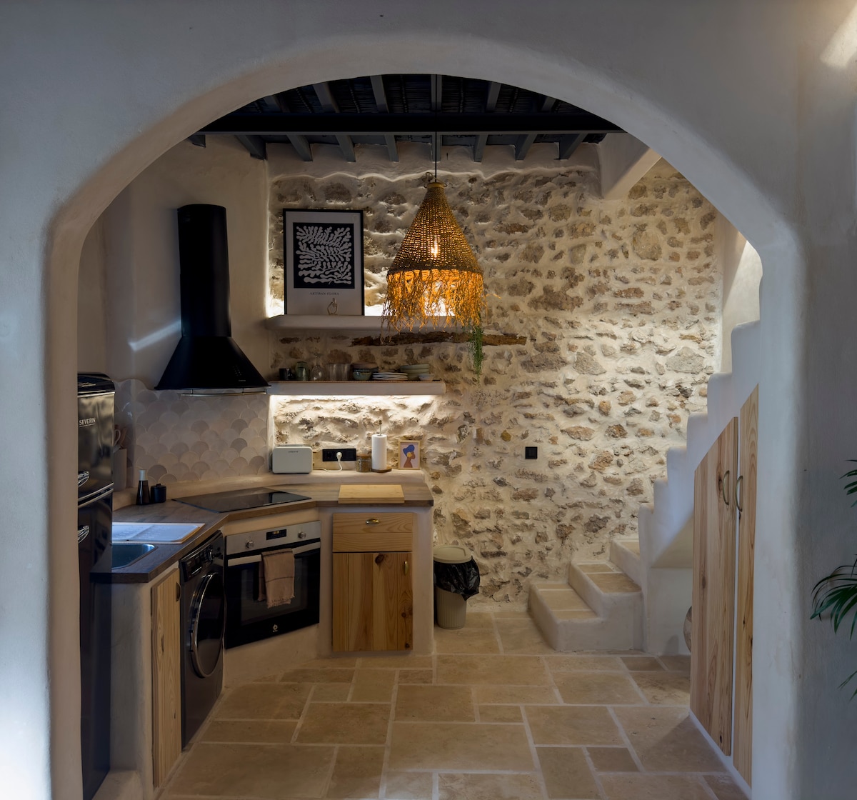 Ẩn mình giữa những con hẻm bằng đá cổ, nơi mặt trời vuốt ve mặt tiền quét vôi trắng là một ngôi nhà hít thở lịch sử và tâm hồn. Bên trong, thời gian dừng lại với các đường cong mềm mại, sàn travestino, và trần nhà của dầm được dệt bằng linh hồn của Địa Trung Hải, nơi mọi ngóc ngách đều bao trùm sự yên tĩnh, và cuộc sống trở thành một nghệ thuật chậm chạp, dưới ánh sáng vĩnh cửu của miền Nam.