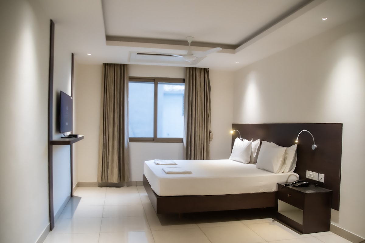 Junior Suite Room Relax in our elegant Junior Suite, perfect for couples or solo travelers seeking a bit more space. Enjoy a plush queen/king bed, cozy lounge area, modern en-suite bathroom, and smart TV. Ideal for longer stays, with stylish décor and all the comforts of home.