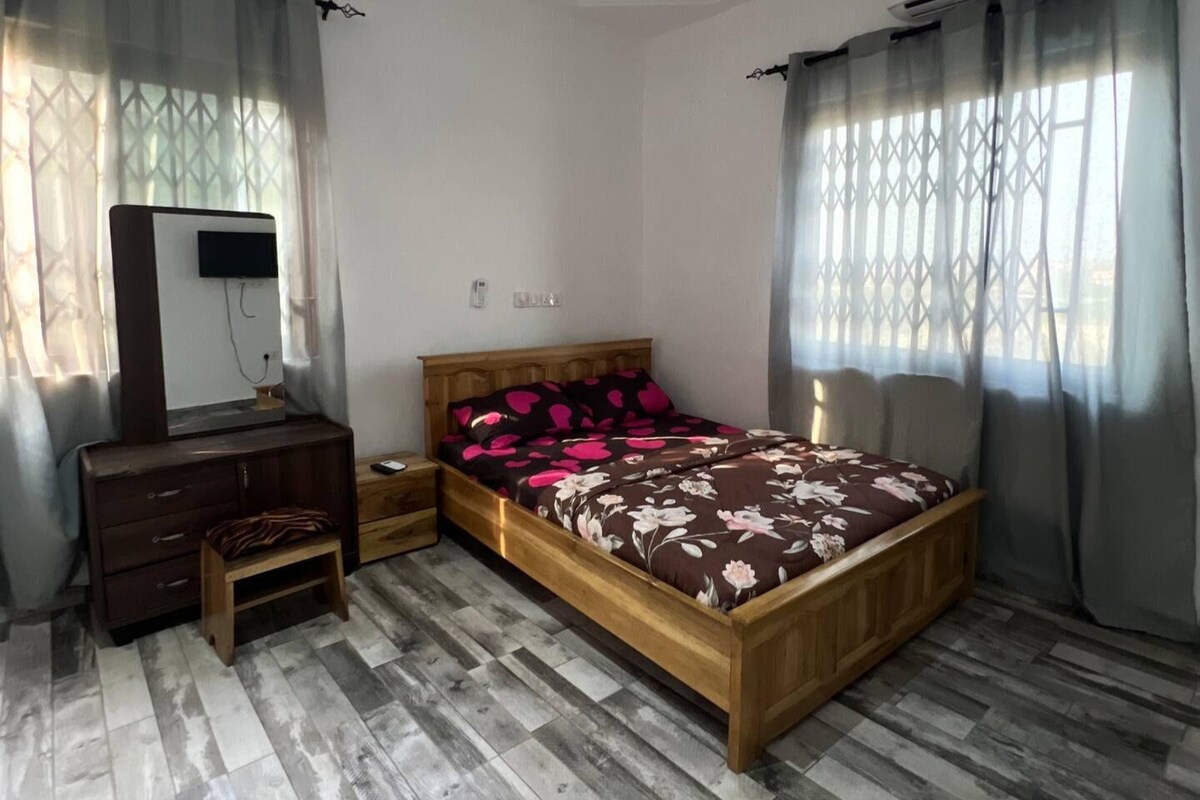 Escape to tranquility at this beautiful 5-bedroom all en-suite duplex, perfectly located in Tema Community 25 Annex, just behind Emef s Estate. The Space - 5 large bedrooms: one double bed in each - 5 ensuite bathrooms - Additional double sofa bed - Fully equipped kitchen - Parking space for up to 6 cars within the compound - 24/7 treated water and electricity - On-site security House Rules - Check-in: 15:00 - Check-out: 11:00 - Pets allowed - Smoking ok - Children welcome - Parties or events are welcome but must inform the host in advance additional charges and terms apply Nearby Attractions -Labadi Beach (~15 mins) - Kwame Nkrumah Memorial Park (~20 mins) - Makola Market (~20 mins) - Osu Oxford Street (~15 mins) - W.E.B. DuBois Centre (~10 mins) - National Museum of Ghana (~20 mins)