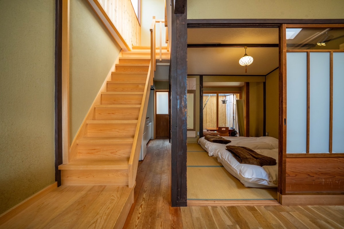 Chào mừng bạn đến với "Little Manjia".Từ ga Kyoto, ga Gojo chỉ cách một trạm dừng bằng tàu điện ngầm Karasuma.Khi bạn xuống xe buýt, bạn có thể đi bộ dọc theo các con phố đầy Kyoto trong 7 đến 8 phút đi bộ đến homestay.Xung quanh là một siêu thị 24 giờ, cửa hàng thuốc và cửa hàng 100 nhân dân tệ cho nhu cầu mua sắm hàng ngày của bạn. "Xiaomanjia" không chỉ nằm ở vị trí tốt, mà còn đi bộ đến hai điểm tham quan chính ở Kyoto - Chợ Nishiki và Phố thương mại Shijo Kawaramachi, chỉ mất 12 phút và 15 phút.Cho dù bạn muốn khám phá chợ địa phương sôi động hay trải nghiệm sự quyến rũ của khu phố nhộn nhịp nhất Kyoto, đây là điểm khởi đầu hoàn hảo. Khi bạn quay lại và cảm thấy mệt mỏi, nhà của bạn là một nơi ấm áp và thoải mái để nghỉ ngơi.Có một bếp nhỏ sạch sẽ và gọn gàng, đầy đủ tiện nghi: tủ lạnh, cảm ứng, lò nướng, lò vi sóng và máy pha cà phê, đang chờ bạn nấu ăn.Máy giặt hoàn toàn tự động với chức năng sấy khô, bồn tắm nước nóng và ghế mát-xa điện rất hữu ích để thư giãn. Tầng hai của chúng tôi có hai giường riêng biệt, mỗi giường có một giường cỡ queen để đảm bảo giấc ngủ thoải mái cho bạn và gia đình hoặc bạn bè của bạn. "Little Man 's House" là một ngôi nhà riêng có lối đi miễn phí và ở nhà. Rất mong chờ chuyến thăm của bạn.