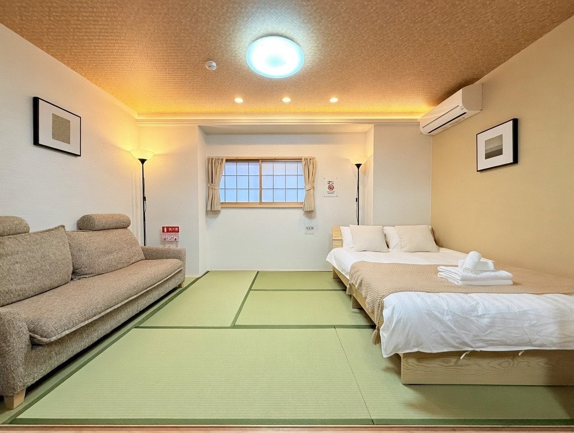 Một nhà khách với cửa hàng quầy bar tuyệt vời nhất. Tất cả các không gian đã được đặt trước. Cách nhà ga 2 phút đi bộ, cạnh FamilyMart. Uống một ly tại quán cà phê với ghế sofa và giường đôi. Bạn có thể thưởng thức phim, Netflix, youtube và âm nhạc bằng cách kết nối nó với máy tính bằng máy chiếu và cáp HDMI. TV lớn và đệm hạt cho một phòng ăn phong cách với nhà bếp và phòng khách thư giãn. Phòng ngủ được trang bị giường đôi. Ngoài ra còn có quạt sưởi để sưởi ấm vào mùa đông.