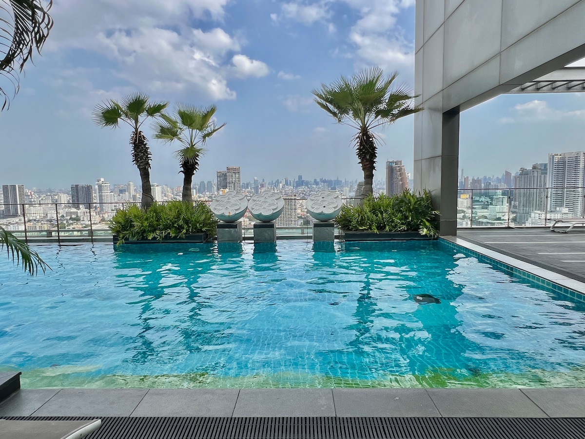 2BR Duplex | MRT Rama 9 CBD | Hồ bơi trên tầng thượng | 4 khách