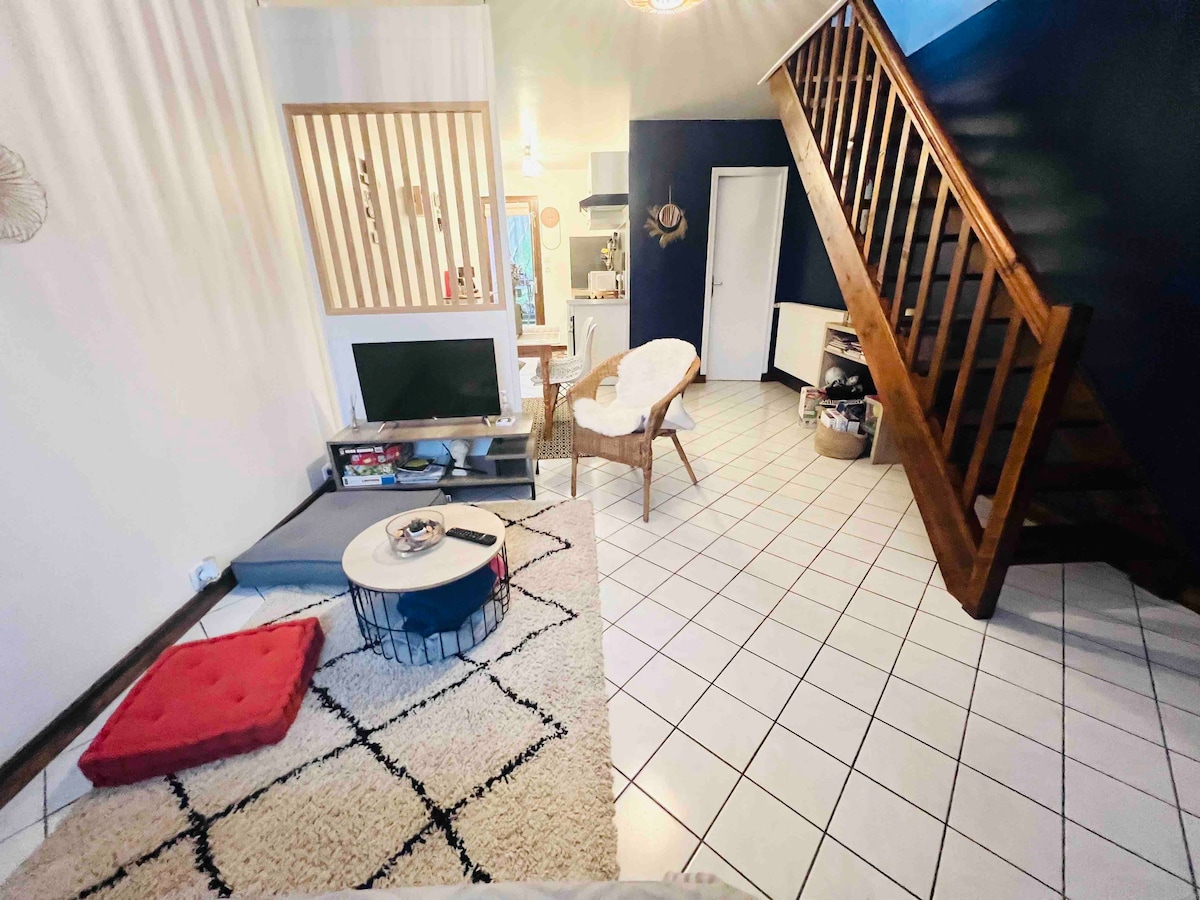 Ở trung tâm quận Saint-Leonard, hãy khám phá cái kén nhỏ yên tĩnh và tươi sáng này (chỗ ở cho khách, 20 m2) Chúng tôi sống tại chỗ quanh năm (nhà trong ảnh), chỗ ở nằm trong sân của chúng tôi với lối vào độc lập Trang bị đầy đủ: giường và khăn tắm được sản xuất tại Pháp, cà phê và trà, sữa tắm Được trang bị bếp nhỏ (tủ lạnh, lò vi sóng, bếp từ, lò nướng), vòi sen/WC, giường cỡ queen trên gác lửng (trần dốc tối đa 1,5m), 1 giường sofa trong phòng khách, bàn ghế