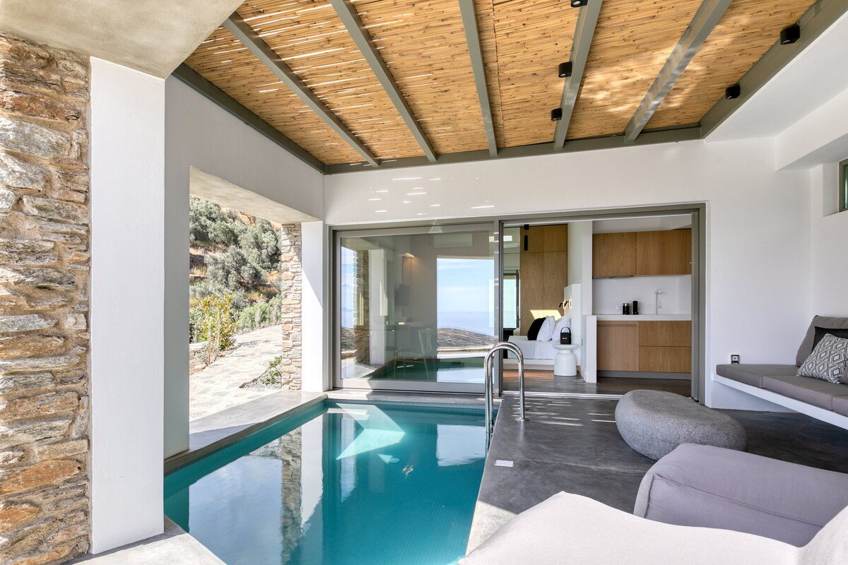 Lấy cảm hứng từ sự vô tận của biển mở bao quanh và hoàn thiện cảnh quan ấn tượng của Tinos, căn hộ được xây dựng theo hình cầu tại một vị trí đẹp ở khu vực phía đông của hòn đảo tại Làng Triandaros. Suite vĩnh viễn với hồ bơi riêng có tầm nhìn tuyệt đẹp ra Biển Aegean. Nó bao gồm một phòng khách hiện đại, một phòng ngủ sang trọng, một phòng tắm hiện đại với vòi sen và một hồ bơi riêng. Chỗ ở này có sức chứa 2-4 người