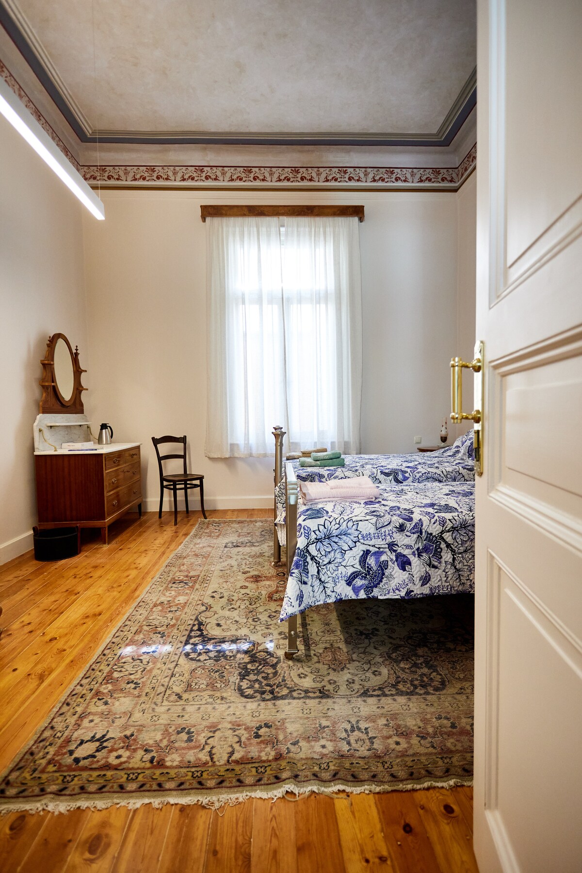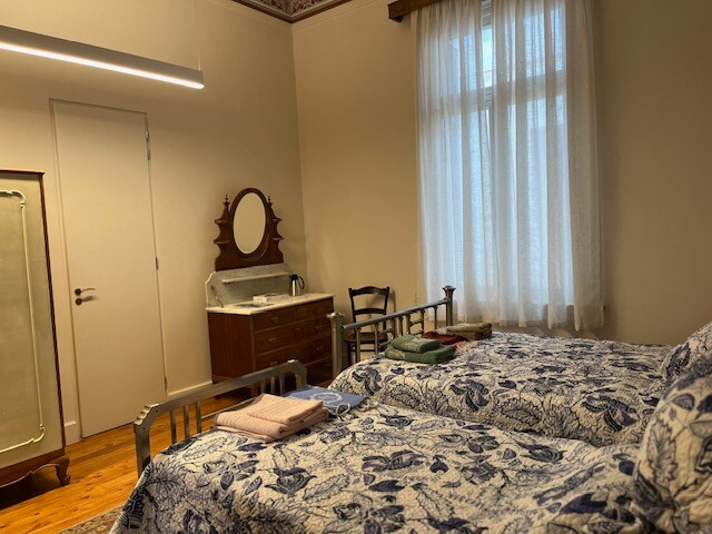 Chỗ ở đặc biệt này gần với mọi nơi, giúp bạn dễ lập kế hoạch. Phòng rộng rãi, sáng sủa với 6 cửa sổ và ban công và phòng tắm riêng. Trần nhà được sơn vào năm 1906 và được bảo quản cực kỳ tốt. Nó có một phòng khách và một cũi hoặc một giường cho trẻ mới biết đi nếu được yêu cầu. Làm mát và sưởi ấm tự động, 2 bồn rửa, nhà vệ sinh và bồn tắm miễn phí trong khu vực phòng tắm. Đó là 10 phút đi bộ trên bãi biển của thành phố và 5 phút đi bộ từ cảng và trung tâm thương mại Chios.
