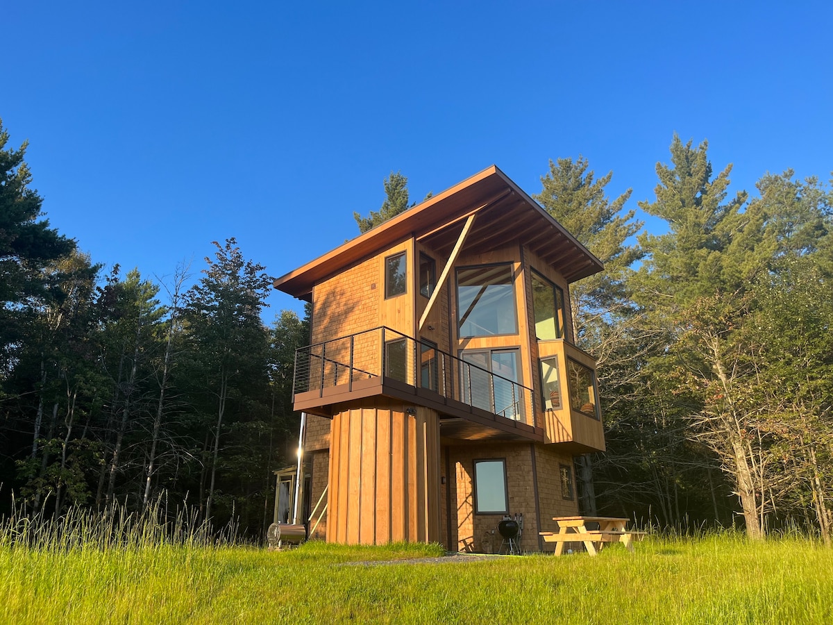 Thiết kế hiện đại trong một khung cảnh độc đáo tạo ra một Trải nghiệm Adirondack đặc biệt mà không có đám đông. Xây dựng mới ở 3 tầng với ánh sáng tự nhiên trong suốt. Hẻo lánh, nhưng tràn ngập ánh sáng và tầm nhìn dài ra núi, Legacy Orchard và rừng. Phòng ngủ chính với bồn tắm đầy đủ, không gian làm việc. Bếp đầy đủ tiện nghi và bồn tắm nước nóng tuyết tùng trên boong (có sẵn quanh năm!) làm cho Nhà gỗ chalet trở thành một nơi rất đặc biệt. Khả năng tiếp cận tuyệt vời với tất cả các hoạt động ngoài trời mùa đông.
