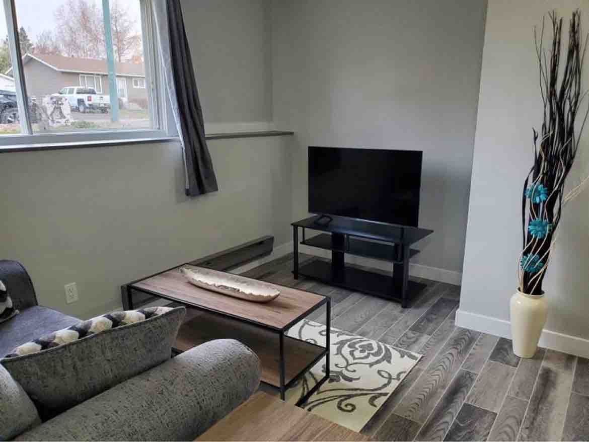 Enjoy a welcoming cozy Home away from Home, centrally located on main street. Air conditioned, clean, comfortable and fully furnished in a quiet building with only 4 units on 2nd floor. Walking distance to 24hr convenience store, groceries, Coop mall, restaurants, gas stations and easy access to all highways in/out of the city. Includes all utilities with wifi, cable and parking. Fully stocked kitchen, bedding, towels and its own washer/dryer and dishwasher. Discount for stays of 30+ days
