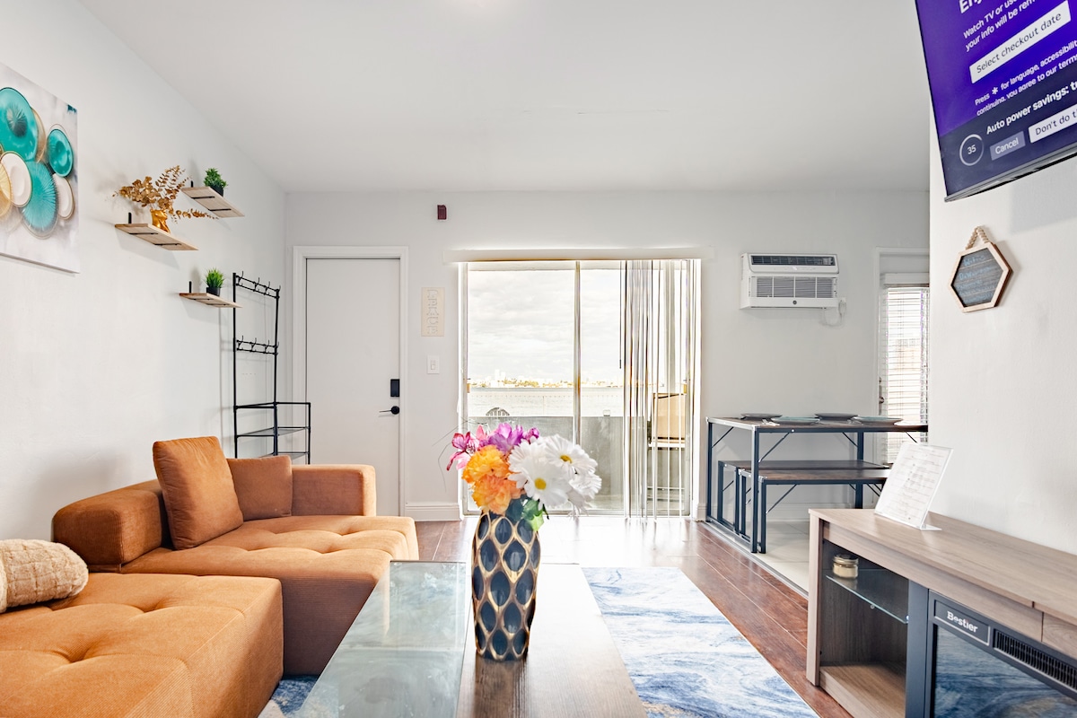 Welcome to our beautifully styled top-floor studio, where you’ll wake up to stunning views of Miami’s Intracoastal waters and skyline. Fully equipped for comfort with a plush queen size bed. A quick 10–15 minute ride to Beaches,Wynwood, the Design District, South Beach, & Downtown. Free parking available. IMPORTANT: You may hear construction during business hours due to a concrete restoration project. Balcony access will be closed from February through June, but your view will not be affected.