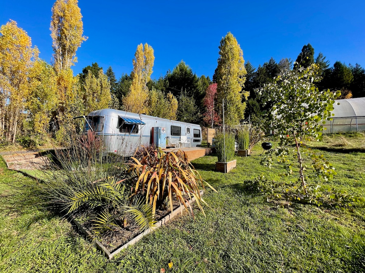 Rated top 51 best Airbnb on Condé Nast ! a part of the Alexandre family farm, you can come stay in our unique, romantic , rustic-modern, remodeled 1979 vintage Avion trailer! Located just past our egg ranch and nestled back in trees for full privacy. "Glamp" on our beautiful corner of a chicken field where you can wake up to rooster crows and cows mooing, located just a 10 minute hike away from the Smith River. Relax under the stars at night and enjoy a hot fire in our cool coastal climate..