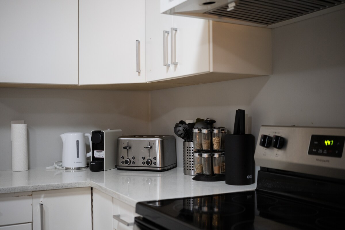 Bright 1BR w/ A/C, Máy giặt/Máy sấy, Nespresso + Wi-Fi