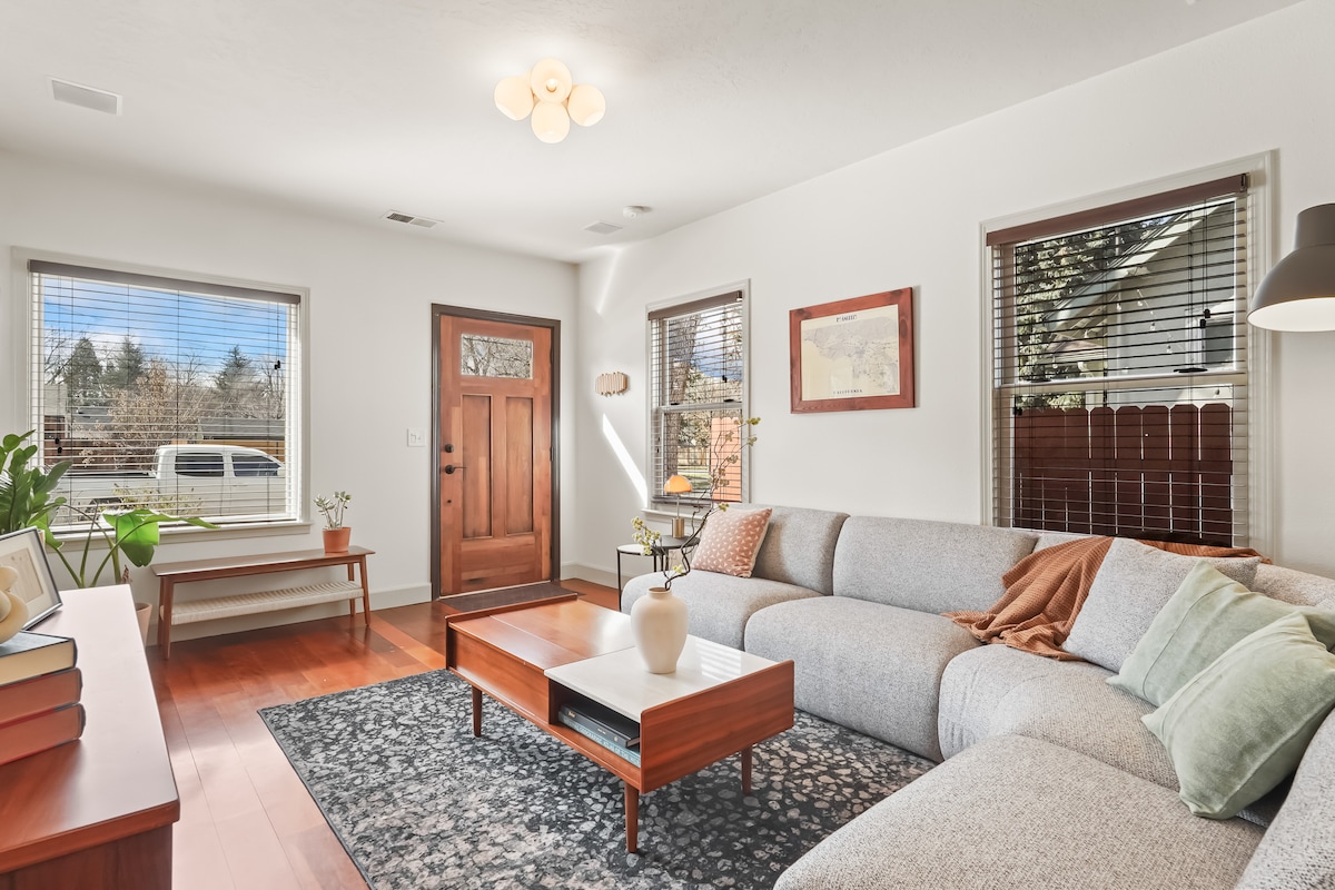"Modern Retreat in Boise's Hyde Park!" Nằm trên dãy nhà đẹp nhất của Công viên Hyde, cách các nhà hàng, quán cà phê, quán bar, yoga và dịch vụ cho thuê xe đạp vài bước chân. Ngôi nhà một tầng này có bếp đầy đủ tiện nghi với các thiết bị bằng thép không gỉ, không gian sinh hoạt và ăn uống đầy phong cách, hai phòng ngủ ấm cúng, phòng TV với giường kéo ra và không gian làm việc. Các tính năng bao gồm bồn tắm đầy đủ với vòi sen thông minh, nửa phòng tắm, kiểm soát nhiệt độ Nest, tự nhận phòng, hố lửa và bãi đỗ xe ngoài đường để thuận tiện cho bạn