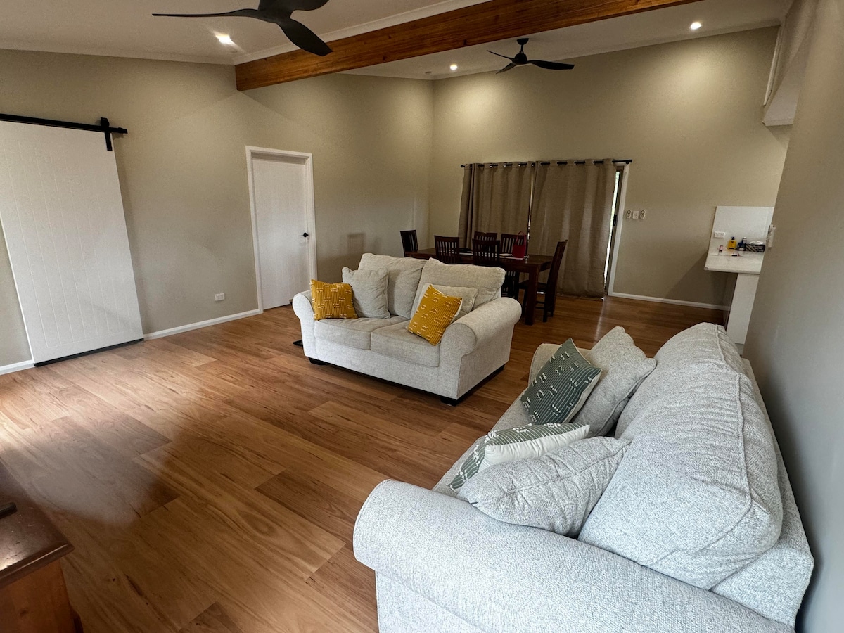 Experience the combination of convenience and comfort in this brand-new home, perfect for families and groups seeking a stylish retreat. - 4 spacious bedrooms with 1 King and 3 Queen beds. - Open-plan kitchen with quality appliances, lounge, and dining area. - Enjoy indoor-outdoor living with an alfresco patio and gardens. 2-Mins to Everleigh Park for outdoor activities. 3-Mins to Greenbank Shopping Centre. 6-Mins to Greenbank Giants AFC Club. 6-Mins to New and popular Eve Café & Bar.