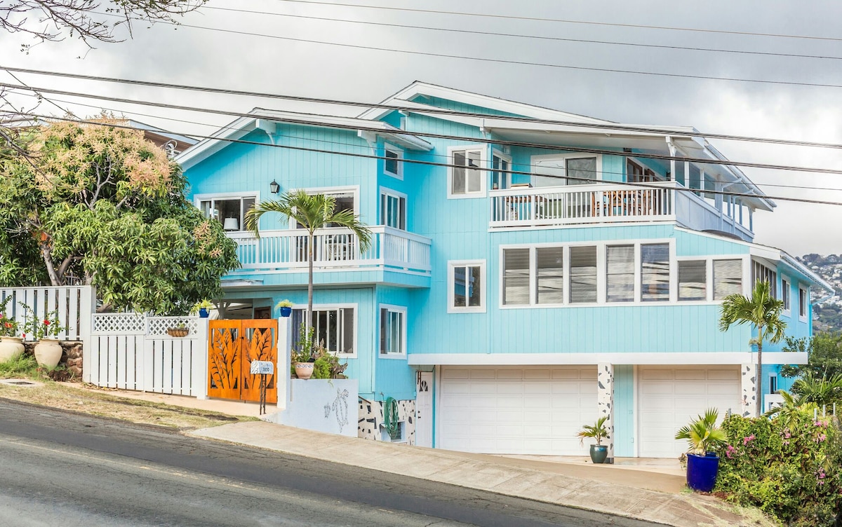 This listing is for the top floor apartment only. It has it's own separate locked entrance. There is no interconnection between this apartment and the apartment below it on the main floor. With 4 bedrooms, 2 baths, a large modern fully equipped kitchen , a large living room and a private deck with a barbecue. The apartment has 1,656 square feet of space. It's close to all of the interesting places and activities of the tourist area but its within the beautiful seaside community of Kaimuki.