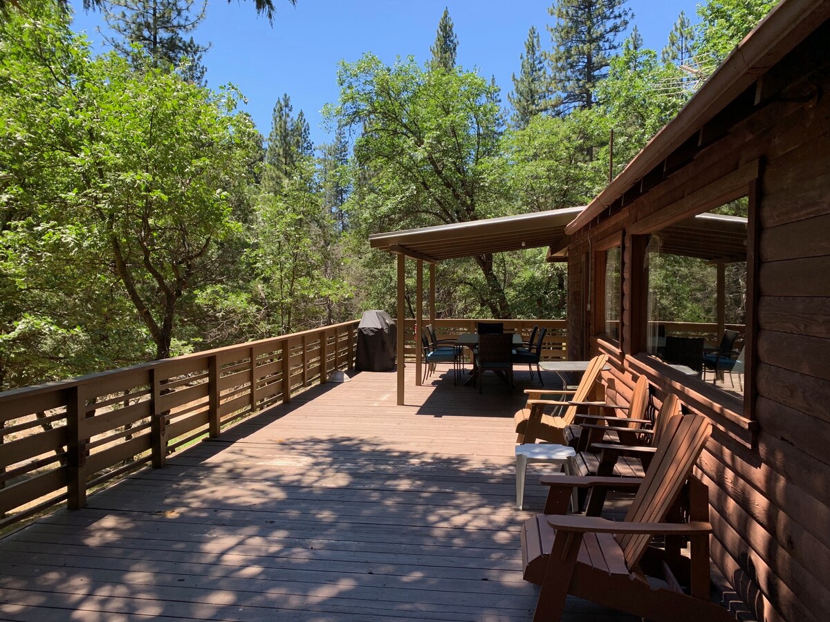 Gorgeous setting INSIDE Yosemite National Park by the Merced River! Expansive outdoor deck overlooking the water with a rustic mountain cabin feel. Large open living area with vaulted ceilings, a wood burning stove, full kitchen, Wifi, HDTV, gas bbq, washer/dryer, and much more. Walk down to the river and enjoy the jumping rock and swimming hole or just relax and enjoy nature. The Wawona Hotel and Pine Tree Market are also nearby for dinner and groceries! Enjoy every season all year long!