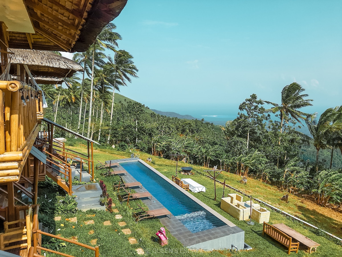 Lều tiki kiểu Bali này nằm ở sườn núi Mambajao nhìn ra biển bohol. Bạn có thể nhìn thấy hòn đảo trắng từ tầng hai. Giường rất thoải mái và phòng tắm kích thước phù hợp với vòi sen cộng với máy nước nóng. Khu vực này sương mù rất nhiều trong mùa mưa. Nó được bao quanh bởi cây dừa tầm nhìn siêu thư giãn nếu bạn đang tìm kiếm một khoảng thời gian yên tĩnh và phiêu lưu.