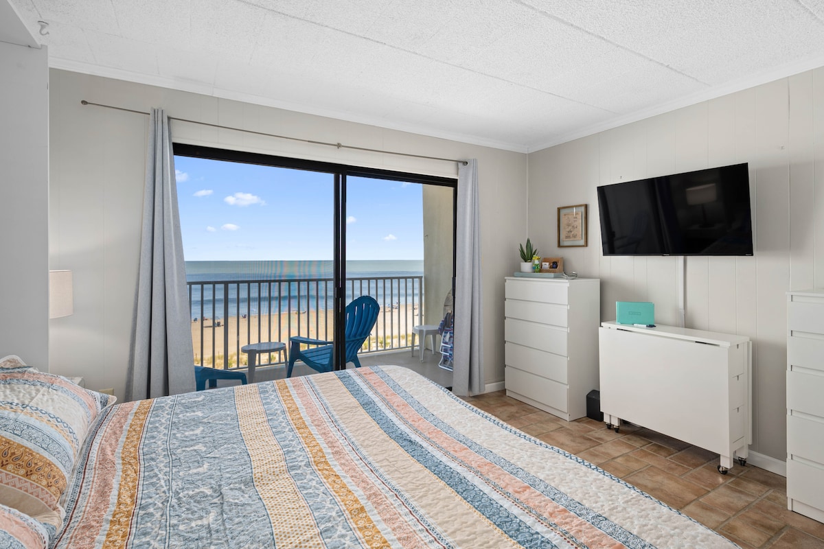 The newly renovated ocean front condo will bring tranquility and peace to your stay as you listen to the waves crashing on the beach. Located on the 4th floor in North Ocean City, you are above the dune line providing you with a private oasis overlooking the horizon. Please note that guests reserving this unit must be 25 years old or older