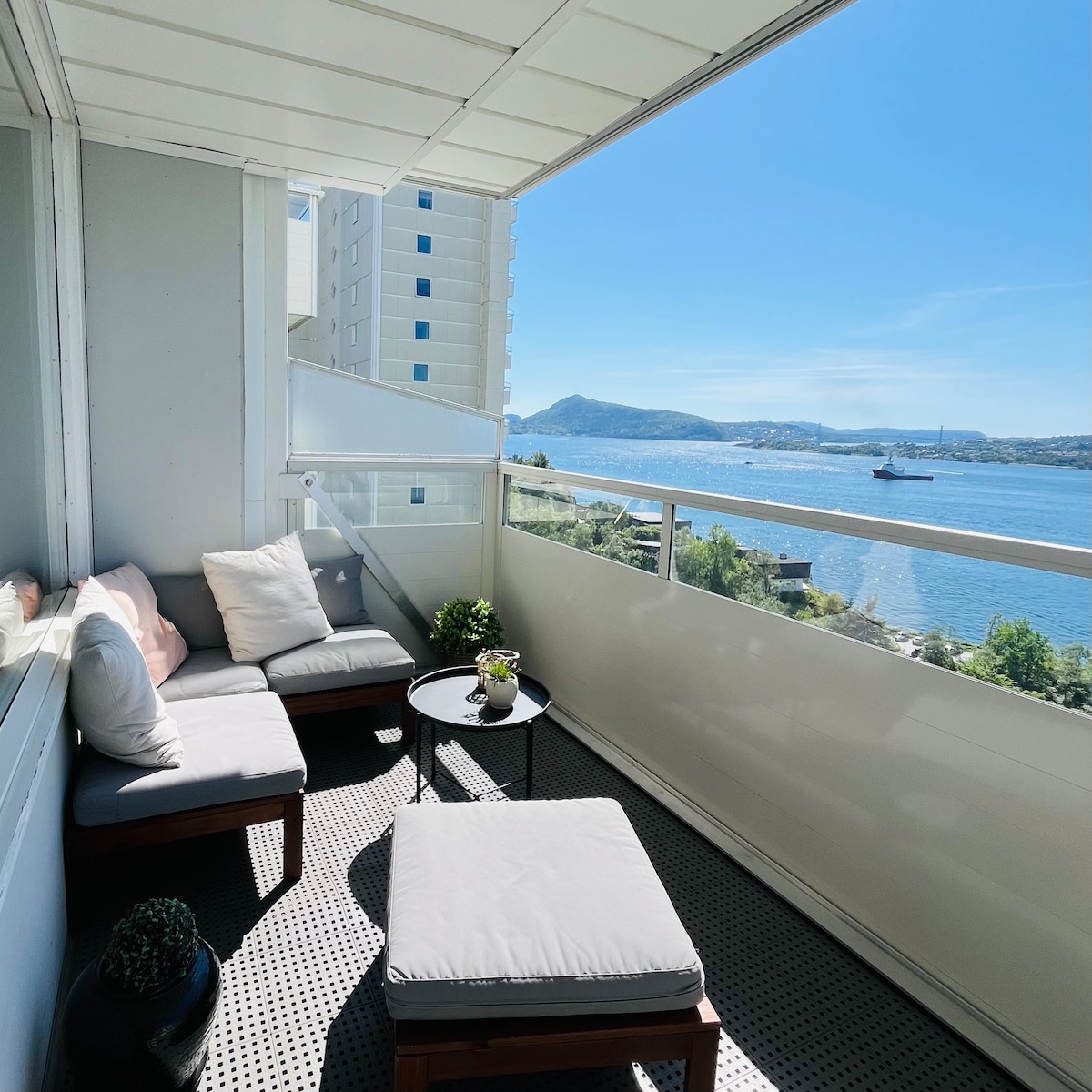 Leilighet med sjøutsikt og balkong