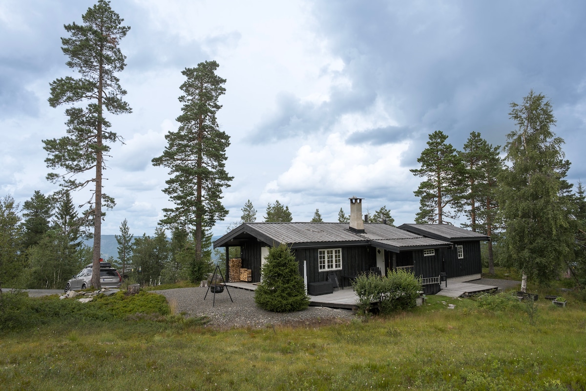 Nhà gỗ ấm cúng với bể sục và tầm nhìn ra Blefjell