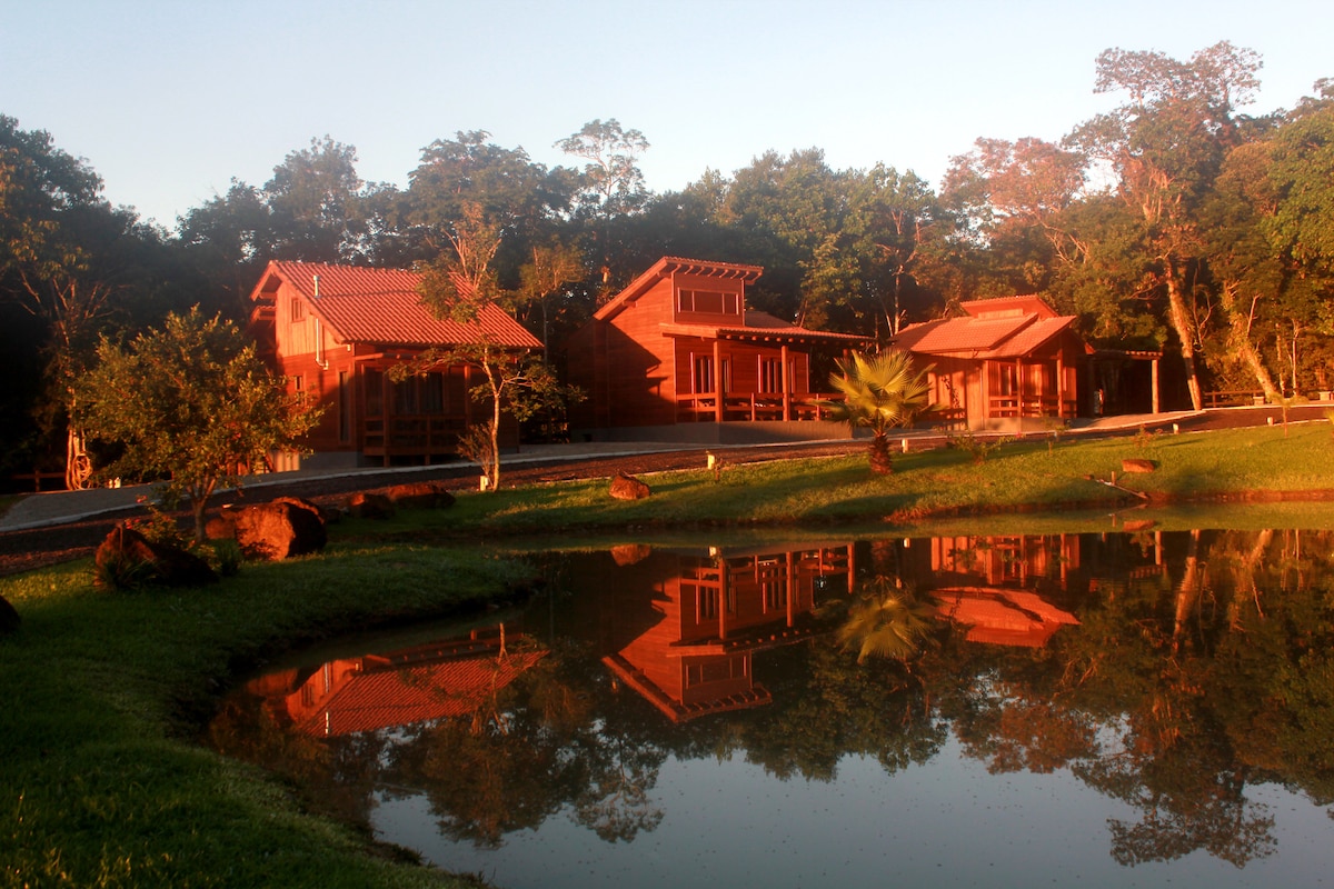 Cabana Flor de Lis của chúng tôi nằm cách trung tâm thành phố New Venice - SC 3 km. Nó được thiết kế để mang lại sự thoải mái và sang trọng giữa thiên nhiên. Ngủ lên đến 04 người. Nó có một giường queen cho một giường đôi và một giường đơn với một giường phụ cho 02 người khác (xem phí cho mỗi người bổ sung). Bồn tắm nước nóng dành cho hai người. Tất cả được trang bị cho các cặp đôi hoặc gia đình muốn tự chuẩn bị tất cả các bữa ăn tại chỗ. Chúng tôi có cũi mini (xem tình trạng còn phòng).