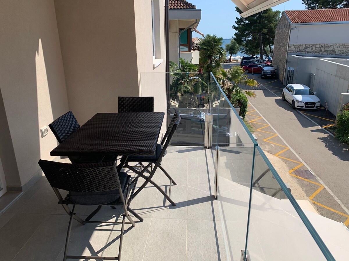 Căn hộ mới trên Riviera đẹp nhất ở Novigrad. 80 m2 với nhà bếp và phòng khách riêng biệt, sân thượng với mái hiên điện, hai phòng ngủ với tổng cộng 5 giường và một cũi trẻ em có sẵn,phòng tắm có vòi sen lớn 1,60 mét. Có tất cả các thiết bị: thời tiết , hệ thống sưởi dưới sàn, máy giặt, tủ lạnh, lò nướng. Khăn trải giường, khăn tắm biển và đồ sành sứ có sẵn. Bãi đỗ xe có bảo vệ. Cách bãi biển 30 m, tầm nhìn ra biển, tầm nhìn trung tâm.