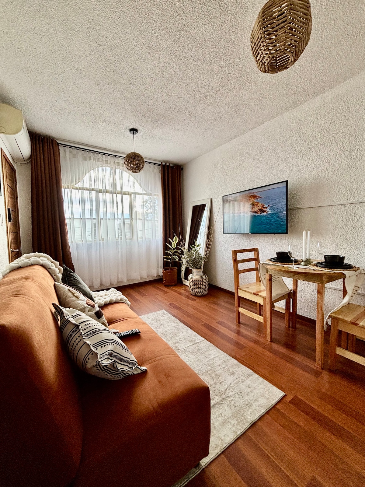 Tham gia chuyến tham quan ảo của chúng tôi Phòng, sao chép và dán liên kết: https://my.matterport.com/show/?m=uzQyVNjCVuV Đó là một căn hộ rất lớn, với thời gian lưu trú với giường sofa, phòng ăn và bếp nhỏ với minibar và lò nướng cảm ứng. Phòng ngủ chính có tủ quần áo với tủ quần áo và phòng tắm rộng rãi. Căn hộ có sân thượng đẹp để thưởng thức bữa sáng và những buổi chiều dễ chịu ở Oaxaca. Nó có Wi-fi. Mỗi lối vào và lối ra của khách, chúng tôi thực hiện vệ sinh và sát trùng sâu.