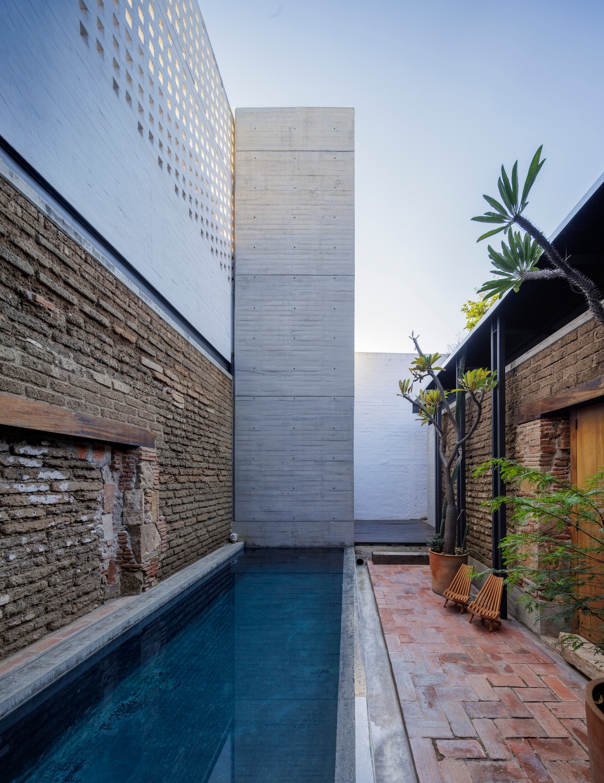 This unique house by the architect Mauricio Rocha is inspired by Arab architecture. The space is configured in different ways, from open rooms perfect for social gatherings to the private pool and steam sauna connected to the main bedroom. The house surrounds two beautiful plum trees that provide a perfect shade for midday gatherings, yet other spaces are perfect to enjoy the beautiful and warm sunlight.