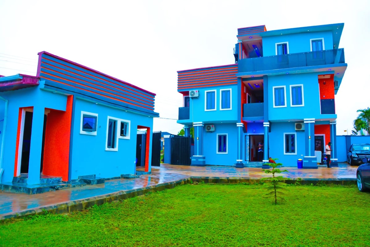 Tận hưởng niềm vui với cả gia đình tại địa điểm đầy phong cách này. Nằm cách sân bay Akure chỉ 5 phút lái xe và cách đường chính chưa đến 5 phút đi bộ. Môi trường yên tĩnh. Cấp điện 24 giờ với hệ thống năng lượng mặt trời sẵn có.