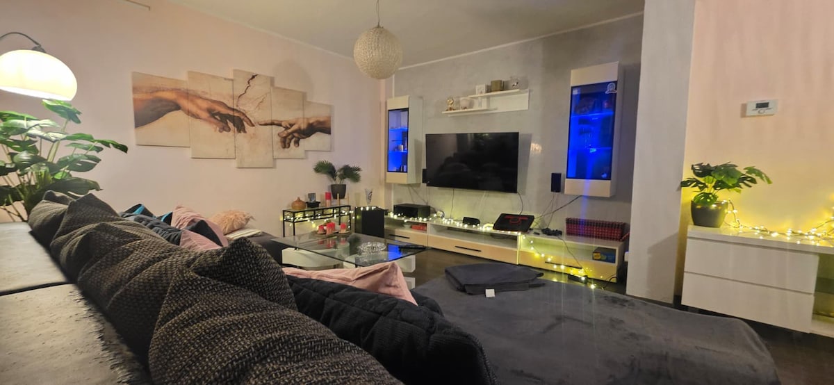 Wenn du in dieser zentral gelegenen Unterkunft übernachtest, hat deine Familie alle wichtigen Anlaufpunkte ganz in der Nähe. Verbindungen zu Bus und Bahn sind Fussläufig in wenigen Minuten erreichbar. Im Umkreis von 50 Metern sind Supermärkte wie Lidl und Aldi, 2 Tankstellen sowie ein Mc Donald‘s. Die Wohnung liegt an einer befahrenen Straße wobei es bei Stoßzeiten zu erhöhten Lärm durch Pkw‘s & Lkw‘s kommt, dagegen ist die Wohnung mit dreifach verglasten Fenstern ausgestattet aber trotz wenig
