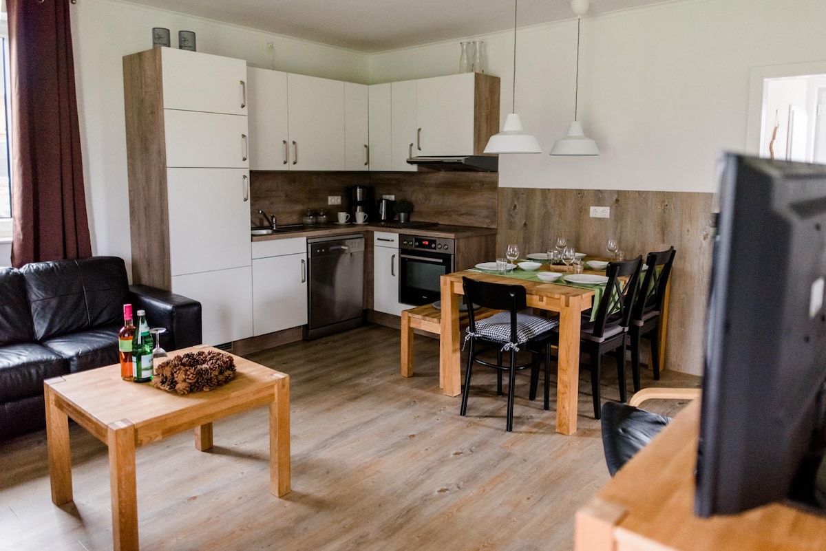 Ngôi nhà nửa gỗ kỳ lạ nằm giữa rừng. Năm 2020, nhà nghỉ thôn dã hoàn toàn mới được mở rộng: hiện đại, chất lượng và ngập tràn ánh sáng. Phòng xông hơi mới và bồn tắm nước nóng ở trong vườn (so với Phụ phí). Do các cửa sổ tầng một lớn mà bạn nhìn vào sân golf lân cận - hoặc tận hưởng thiên nhiên hoang sơ. Chỗ ở hẻo lánh có điều kiện tốt nhất cho những giây phút thư giãn tối đa 8 người. [Trẻ em dưới 10 tuổi được miễn phí/khi đặt phòng với bạn đồng hành.]