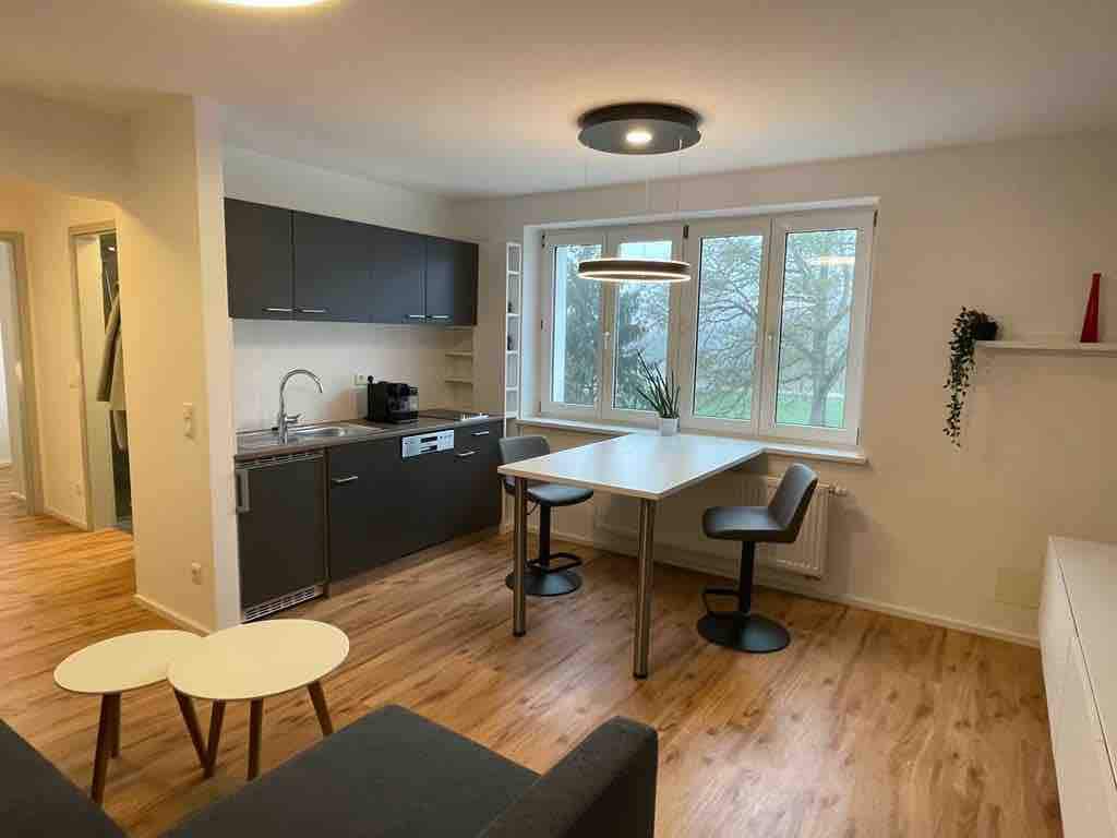 Super modern und gemütliche eingerichtete Wohnung 98qm, sehr hell mit grossem Balkon und tollem Ambiente Optimal für Langzeit Gäste. Vermietung bis April 2025 möglich. TV, wLan, Küche, Wasch Maschine ist Vorort Parkplatz vor dem Haus. Ruhige und grüne Umgebung.