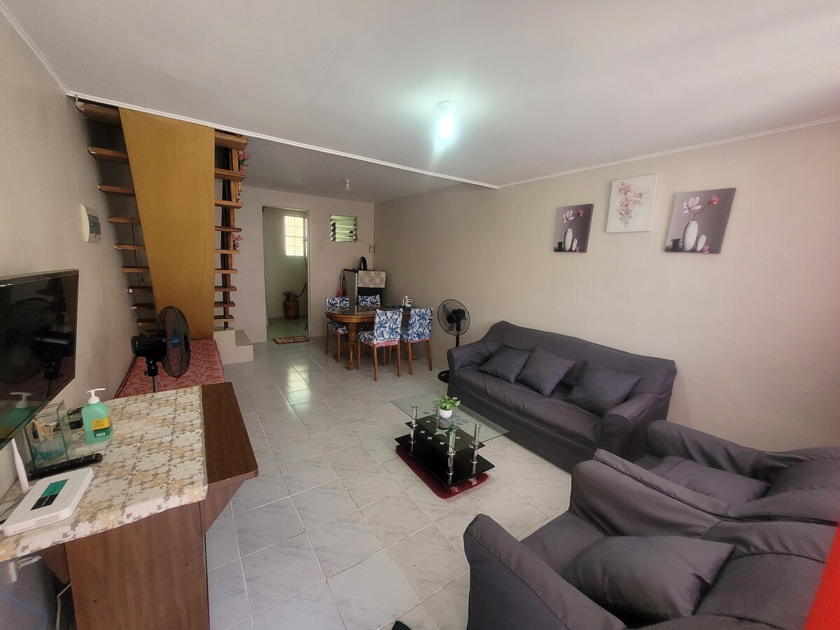 Hãy quên đi những lo lắng của bạn trong không gian rộng rãi và thanh bình này. Chỗ ở tốt nhất trong thị trấn Tốt nhất cho 6 người ☀️ 🏔Mountain Viewing cách bãi biển🌊 5 phút ⛱🏖 Đã bao gồm: ✅ Wifi phòng✅ ngủ có điều hòa nhiệt độ ✅TV ✅Phòng khách Khu vực✅ ăn uống ✅Bếp có đồ dùng nhà bếp (có thể nấu ăn với bếp, lò nướng, lò vi sóng) Nước uống✅ miễn phí ✅ Phòng tắm có máy sưởi ✅Với khăn tắm Chúng tôi nằm ở Brgy. Mulawin, Sta. Cruz, Occidental Mindoro. Đặt ngay! 💬