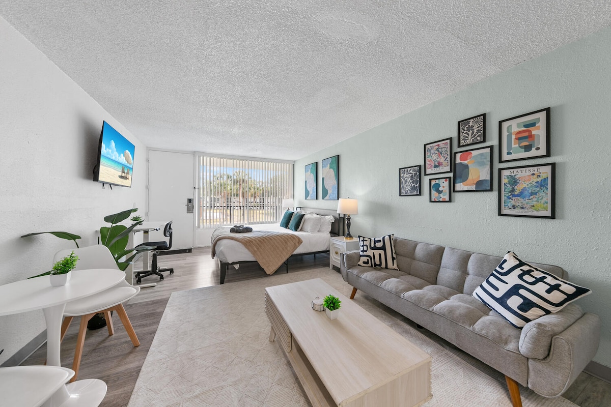 Kick back and relax in this chic, modern studio in the heart of Jacksonville, FL. Whether you’ve spent the day soaking up the sun or exploring nearby favorites, this bright and cozy space is the perfect place to unwind: ✔ Spacious Open Layout ✔ Fully Equipped Kitchen ✔ Reliable Wi-Fi & Work Area ✔ Smart TV with Your Favorite Streaming Apps ✔ Onsite Laundry, Tranquil Courtyard & Free Parking Everything you need for a relaxing Jacksonville getaway!
