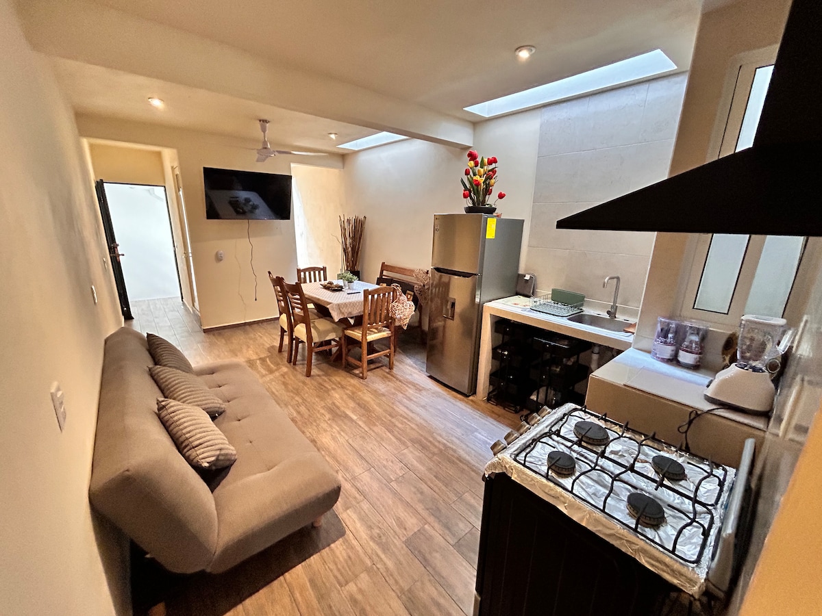 Con un toque contemporáneo, sin desvirtuar lo tradicional y lo colorido, nuestro departamento ofrece comodidad y confort, con un carácter propio que lo hace único, su mobiliario evoca a las festividades emblemáticas y sobre todo el arte popular mexicano. La habitación está inspirada en las piñatas y en la conmemoración del día de los muertos, cuenta con dos cómodas camas matrimoniales y un hermoso baño. La cocina y la sala tienen una vista increíble hacia la naturaleza.
