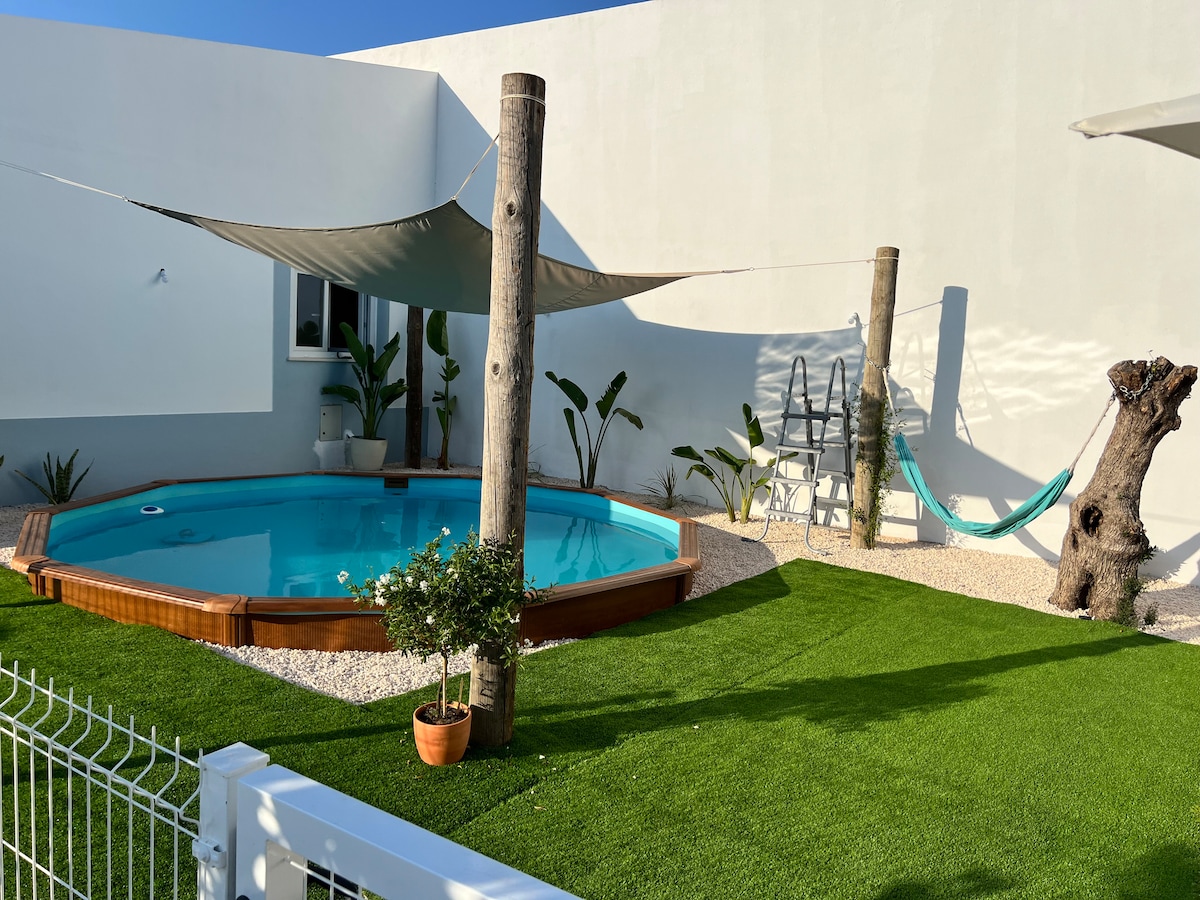 Khám phá cuộc sống lấy cảm hứng từ Địa Trung Hải hiện đại tại biệt thự tinh tế này ở Santa Bárbara de Nexe. Cách Sân bay Faro và Almancil vài phút, nơi nghỉ dưỡng thanh bình này có hồ bơi nước nóng, bể sục trên tầng thượng, cuộc sống trong nhà - ngoài trời liền mạch, nhà bếp ngoài trời và nội thất phong cách Địa Trung Hải thanh lịch. Hoàn hảo cho các gia đình, cặp đôi hoặc nhóm đang tìm kiếm một kỳ nghỉ đáng nhớ với các con đường mòn đi bộ đường dài, tầm nhìn ra vùng nông thôn và lối đi ra bãi biển, sân golf, mua sắm và ăn uống. Gửi tin nhắn cho chúng tôi!