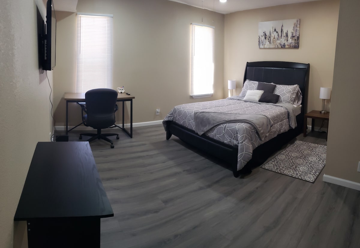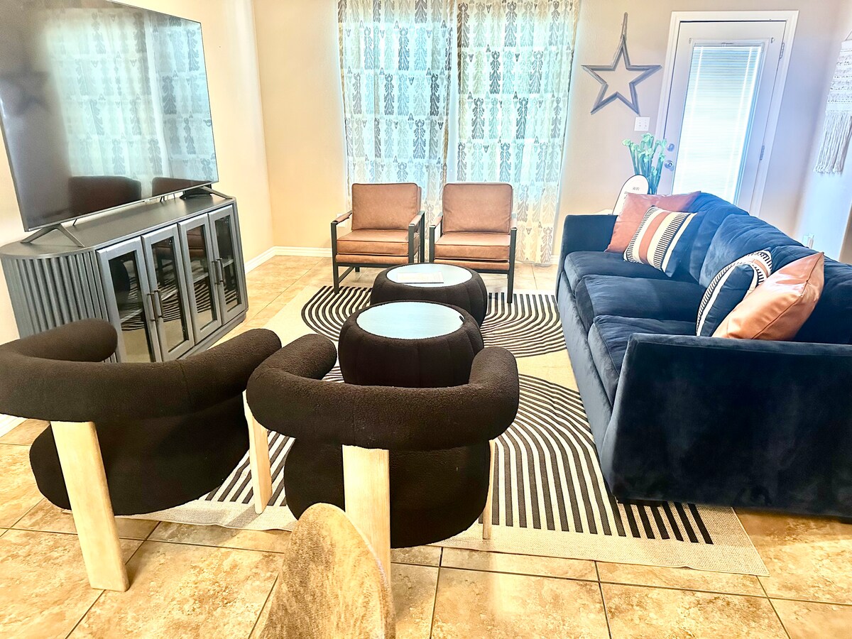 Gần Đấu trường La Mã Quận Ector và 2 con đường chính ở Odessa: Andrews Hwy và đường 42. Gần quán bar Dos Amigos và Grill để ăn uống sau giờ làm việc và dễ dàng đến các nhà hàng, trung tâm mua sắm, cửa hàng tạp hóa, trung tâm mua sắm, trạm xăng trên đường 42 Hoàn thành vào tháng 4 năm 2025 với mọi thứ mới mẻ. - Nệm mút cao su 12"kích thước đầy đủ, - TV thông minh Amazon Fire 50", -10 cu ft tủ lạnh, -1000W lò vi sóng, - Bếp nấu bằng thủy tinh nóng, - Bộ bát đĩa, bộ đồ ăn và bộ dụng cụ nấu ăn -R.O. nước có sẵn trong phòng giặt ủi
