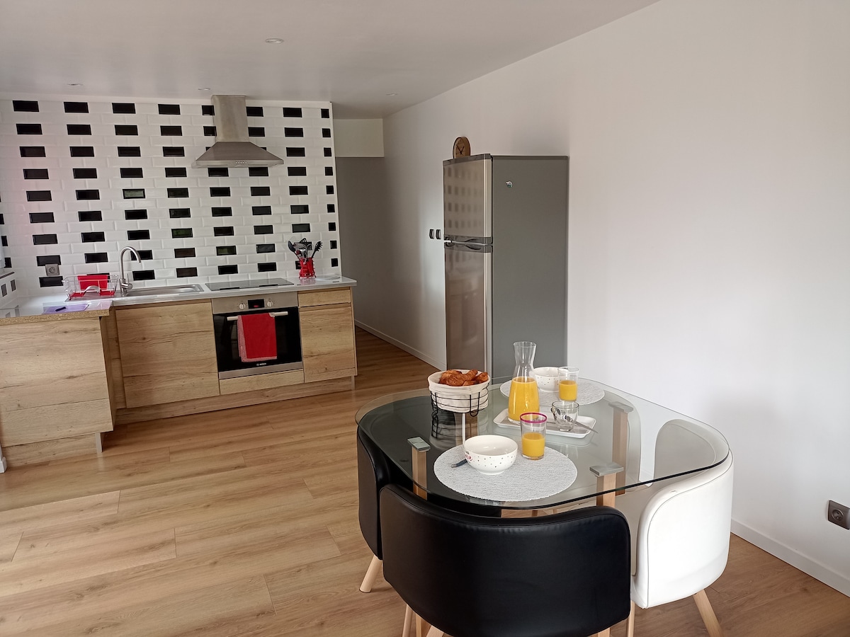 Venez vous ressourcer dans une atmosphère chic et contemporaine. ------------------------------- Tout est prévu afin que vous passiez un moment inoubliable avec des attentions particulières. ----------------------------- Au sous sol, une cave voûtée du XVe siècle a été spécialement aménagée en salle de cinéma avec un son immersif. Éclairage d’ambiance sans oublier un grand lit type hotel pour une expérience unique. ------------------------------ Place de stationnement privée à 5 minutes à pied.