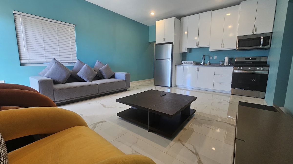 Step into your home away from home! Our comfortable space is conveniently located near the airport (7 min. drive) and ferry (10 min. drive) ensuring a smooth transition to your Caribbean retreat. Hop in a car for a quick 7-minute ride to Basseterre's vibrant city center or take a leisurely 25-minute stroll. If in need of essentials, supermarkets, food courts, bakery, pharmacy, and bank are all within a breezy 5-minute walk.