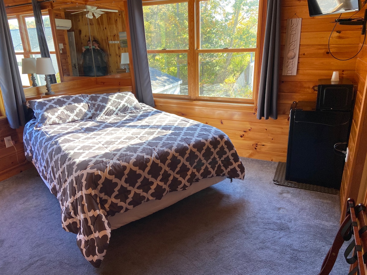 This bright, airy 2nd-floor studio condo sits in a peaceful Cape Neddick setting (on the Ogunquit line), just a 5-minute walk to Perkins Cove. The cozy unit features a separate kitchenette (sink, mini fridge, microwave, convection toaster oven, induction cooktop), a combined sitting/sleeping area, and bathroom with stand-up shower. A Keurig coffee maker is provided for your convenience. We supply a couple of K-Cups to get you started—please bring your favorites to enjoy during your stay!