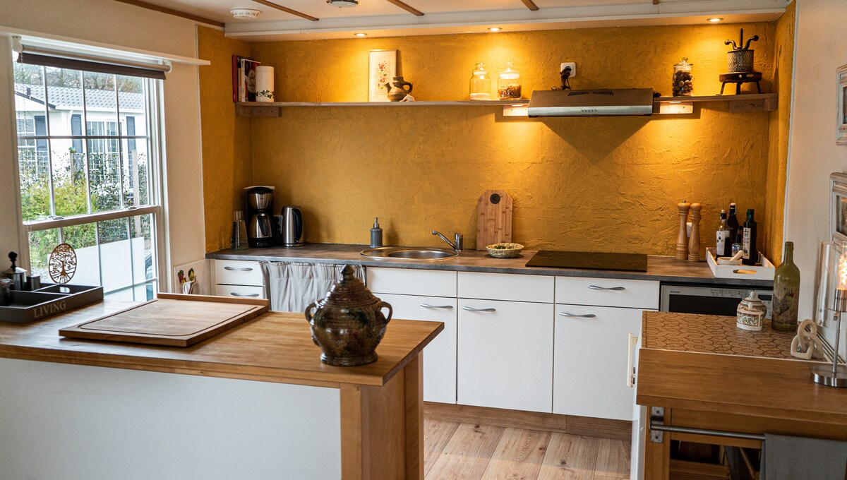 Knus & stijlvol huisje in Oisterwijk – genieten van rust en natuur Sfeervol huisje, gelegen op een rustig park in het prachtige Oisterwijk. Charmant verblijf met zorg ingericht en combineert vintage meubels met natuurlijke tinten voor een warme en huiselijke sfeer. Veel lichtinval door grote ramen en een gezellige eet- en zithoek. Privé parking, afgescheiden tuin, volledig ingerichte keuken (combimagnetron) en smart-tv. Gelegen tussen Oisterwijkse bossen en vennen. Heerlijk wandelen/ fietsen.