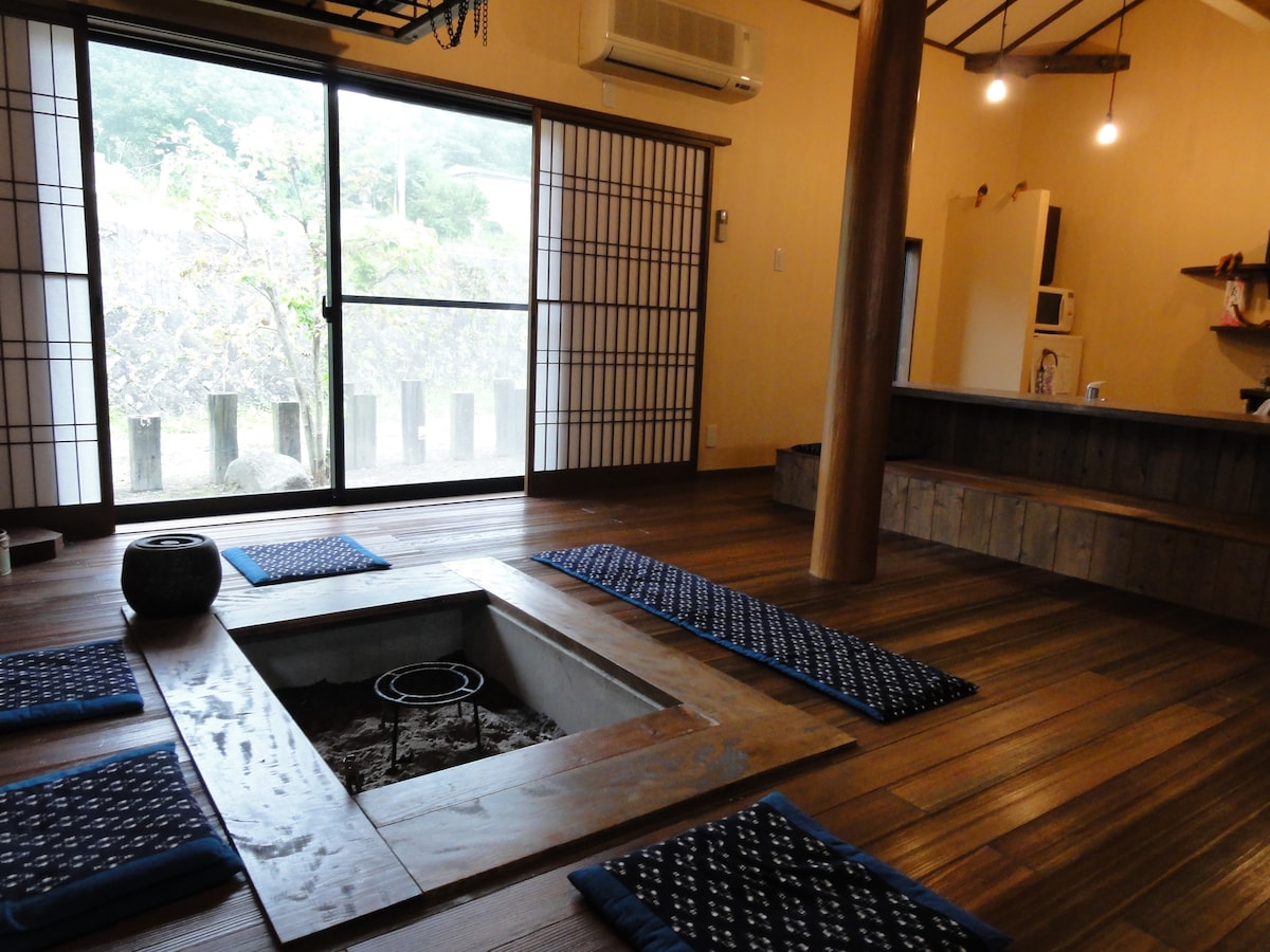 Nó nằm trên một bức tường đá nơi các con sông hợp lưu, và là một ngôi nhà đơn, riêng tư, được cải tạo, được bao quanh bởi cây cối. Không có tòa nhà nào trong tầm nhìn, và bạn có thể tận hưởng âm thanh của dòng sông, tiếng chim và cảm giác hòa mình vào thiên nhiên. Nước là nước suối (chất lượng nước đã được kiểm tra). Tùy theo mùa, có những người đến và đi dọc theo dòng sông bên cạnh nhà trọ, nhằm mục đích chơi trên sông và đi đến Thác Kappa. Nếu thời tiết tốt, bạn có thể chơi ở sông và có một bữa tiệc BBQ với các thành phần bạn mang theo, Bạn cũng có thể tận hưởng lửa trại. (Vui lòng cẩn thận khi xử lý hỏa hoạn.) Trong trường hợp trời mưa, bạn có thể thưởng thức thức ăn bạn mang theo trên than củi trong lò sưởi chìm trong phòng hoặc bạn có thể nấu ăn trong khi nghe tiếng sông, vì chúng tôi có dụng cụ nấu ăn, lò vi sóng và bát đĩa. Nếu bạn đi lên lối đi dạo ven sông, bạn cũng sẽ tìm thấy Thác Kappa cách đó khoảng 150 m. Vui lòng chuẩn bị thức ăn và đồ uống cho bữa tối, v.v. trước khi nhận phòng.Mất 20 phút đi ô tô đến siêu thị. Con đường không trải nhựa và hẹp hơn 400 mét trước ngôi nhà cũ, vì vậy rất khó để hiểu. Nếu bạn đến "Camu Tsubakiyama", chúng tôi sẽ hướng dẫn bạn.