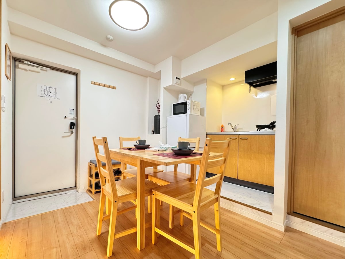 Nằm gần Akihabara và Okachimachi, dễ dàng tiếp cận một số tuyến tàu, studio theo chủ đề gỗ ấm cúng này mang đến một kỳ nghỉ yên tĩnh và hiện đại. Phòng 25㎡ bao gồm giường queen, bàn làm việc, TV 55 inch và máy in. Nhà bếp có bếp ga, lò vi sóng, máy nướng bánh mì, ấm đun nước BALMUDA, nồi cơm điện và dụng cụ nấu ăn. Có phòng tắm vòi sen, nhà vệ sinh riêng, máy giặt và tiện nghi. Ánh sáng dịu nhẹ và gỗ tự nhiên tạo nên không gian thư giãn lý tưởng cho cả công việc và giải trí.