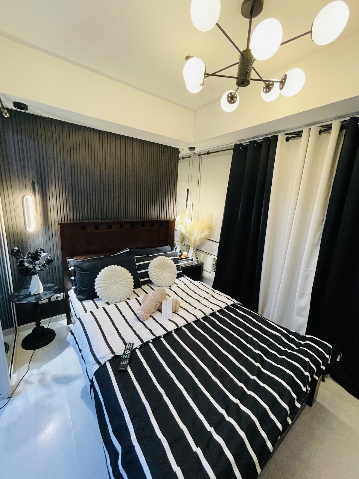 Vị trí chỉ cách SM Bicutan một quãng đi bộ và chỉ cách NAIA 1, 2 và 3 15 phút đi bộ. Mức giá phù hợp với 2 người nhưng người bổ sung được phép tối đa 2 khách. Một nơi tối giản với một chút thiên nhiên Một nơi tuyệt vời cung cấp tất cả những gì bạn cần để có một kỳ nghỉ ngắn. Ngủ như thể bạn đang ở nhà. Không khí của ngôi nhà là những gì chúng tôi hướng đến, hãy tận hưởng thời gian lưu trú của bạn với những người thân yêu của bạn ở đây. Chúng tôi cung cấp cho bạn một căn phòng phong cách, thoải mái, đồ dùng nhà bếp, với wifi và TV thông minh để giải trí.
