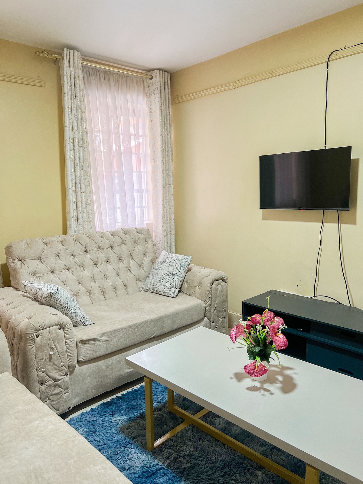 Luxurious-Executive 2br, 2Bath bnb; a clear view of L. Nakuru from the back balcony and a view of Nakuru- Nairobi highway from the front balcony. At NAKA CENTER NAKURU, 5 mins drive from NAKURU CBD. Tight security in a secure area, free private parking, free WIFI and Netflix. Offers access to a terrace. Fitted with big sofas, googleTV, a dining area, hot showers, free toiletries, fully-equipped kitchen. Near SAROVA WOODLANDS. The whole group will be comfortable in this spacious unique space.