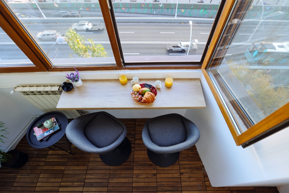 Wake up to balcony views and unwind in refined comfort. This elegant suite features a Smart TV, blackout curtains, fast WiFi, and AC—perfect for business or leisure. Located in the heart of Bucharest near Unirii Square and Old Town, it’s a peaceful and stylish escape. ✨ Ready for your Bucharest stay? Book now!